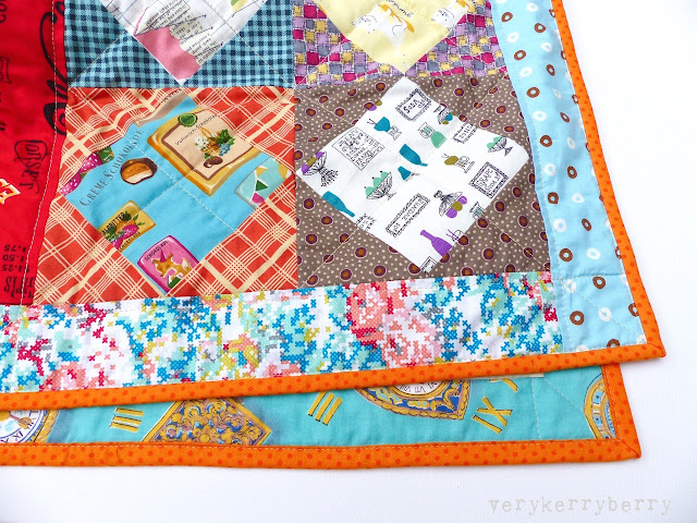 This quilt is my second take from the Making a Quilt 10-part series I wrote for The Sewing Directory. Fiona and Julie ran a Simple Sampler quilt along and I couldn't resist another version. This is from my scraps with the occasional raid on a half used fat quarter. The binding and backing were from my stash so nothing new was purchased. My nephew claimed it part way through the process and he happily had it for Christmas.